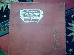 In the 20th century, a banking game was added to the box and the title lengthened to Bradley's Toy Money and Banking Game.[1]: 9 After World War II, the title returned to Educational Toy Money and Toy Money, and continued to be published by Milton Bradley until 1950.