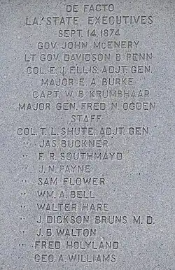 - ^ "Personal encounter between Gov. Kellogg and Major Burke – No blood shed", The New York Times, 30 October 1874