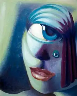 The people painted in "experimental and reproducible conditions": everyone had identical easels, with the same materials available, and even the same size sheets of paper (22 by 18 inches, 55 cm by 45 cm).[7] Adamson was to provide only minimal technical advice. Initially Adamson worked inside the hospital in a committee room with up to forty patients at once, conducting at first two sessions, and, later, four per week. Another early location was a shower room, chosen by the nursing staff to be easy to clean afterwards. By 1948, when he was employed full-time, a studio was built in the hospital grounds for Adamson's own use. This building was a converted army hut, 48 feet (15 metres) by 16 feet (5 metres), and able to accommodate twenty people 'with comfort'. From 1948, Adamson also saw, for two hours each morning, a group of women, on a ward of the main hospital, most of whom had the diagnosis of schizophrenia, and who had all lived in Netherne for many years.[8]