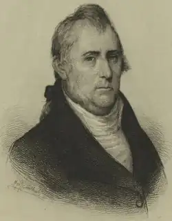 In 1797, Washington wrote to Carrington stating that he had just met with John Marshall, who approved of an improved threshing machine by a Mr. Booker. Washington asked that Carrington forward another letter to Booker.[24] In 1798, President John Adams selected Carrington to be the quartermaster general for the United States Army during the Quasi-War with France, but the position was never filled and was eliminated when normal relations were restored. In 1807, Carrington was foreman of the jury during Aaron Burr's treason trial. His brother-in-law John Marshall was the presiding judge and Burr was acquitted.[1]