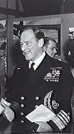 Recalled in 1939, the following year Evans participated in the Norwegian campaign, after which he retired from the Royal Navy on 9 January 1941. During the remainder of the Second World War he served as London Regional Commissioner for Civil Defence.[1] On 12 November 1945, he was created a Peer as Baron Mountevans, of Chelsea in the County of London.[40][41] He was Rector of the University of Aberdeen from 1936 to 1942.