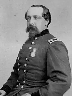 Sent to the Western Theater along with the IX Corps in early 1863, Ferrero led his brigade with distinction during the Siege of Vicksburg. He subsequently commanded a division during the Knoxville Campaign, and was in command of the defenses of Fort Sanders. Transferred eastward again in 1864 with the corps, he served in the Siege of Petersburg, commanding a division of black troops. His men were involved in the ill-fated July 30 charge on the Crater, where they suffered significant losses supporting the initial attack of Brig. Gen. James H. Ledlie's division. Both Ferrero and Ledlie received criticism for remaining in a shelter behind the lines through most of the battle, passing a bottle of rum between them. A court of inquiry headed by Maj. Gen. Winfield S. Hancock cited Ferrero for "being in a bomb-proof habitually, where he could not see the operation of his troops [nor know] the position of two brigades of his division or whether they had taken Cemetery Hill or not."[2]