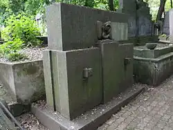 At his grave, Dr. A. Goldman said:[60] "reticent in colloquial conversations, strong in resolving professional and academic difficulties, Edward Flatau died as a result of the suffering that he recognized himself and during the course of his illness he carefully and stoically made notes about its progress (...). His friend Samuel Goldflam mentioned: (...) I have to speak over the grave of my late friend ... He was a fanatic of work and he worked relentlessly, since January he knew perfectly well that he was afflicted with an incurable disease, but he did not confide it to anyone, he did not let anyone know."[61] Several thousand people came to his funeral. His headstone was done by sculptor Mieczysław Lubelski.[62] He died in 1932, the same year as two other notable Polish neurologists and friends, Samuel Goldflam and Joseph Jules François Félix Babinski (Polish-French neurologist).