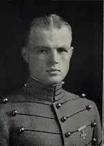 Appointed from Indiana, Edward White followed his older brother to West Point, which he entered on July 1, 1920. He graduated 270th out of 405 in the class of 1924 on June 12, 1924, and was commissioned as a second lieutenant in the United States Army Air Corps. He attended the Air Corps Primary Flying School at Brooks Field, Texas, the Air Corps Advanced Flying School at Kelly Field, Texas, and finally the Air Corps Balloon and Airship School at Scott Field, Illinois, from which he graduated as a Balloon Observer and Airship Pilot on July 20, 1926.[2][3] He married Mary Haller, a girl from Fort Wayne, on July 22, 1925. They had three children: a daughter, Jeanne, born in 1927, and sons Edward Higgins White II, born in 1930,[1] and James Blair White, born in 1942.[4][5]