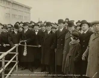 Riegelmann opening the Coney Island boardwalk in 1922. Riegelmann is the man in the center, next to the man holding the cane.