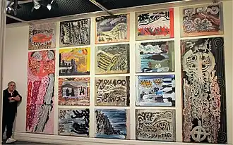 His solo exhibitions include the Bootle Art Gallery, Liverpool (1969), the Camden Arts Centre, London (1982), Air Gallery, London (1985), Kapil Jariwala Gallery, London (1987, 1991), Arts in Mann Gallery, Isle of Man (1991), Smith Janwala Gallery, London (1994), Courtyard, Hereford (2005),[1] Martin's Gallery, Cheltenham (2006),[2] House of Manannan and Manx Museum, Isle of Man (2012)[3] ,[4] Artwave West, and Dorset (2012).[5][6] Edward Kelly's painting Sea Cross is in the collection of the National Gallery of the Isle of Man.