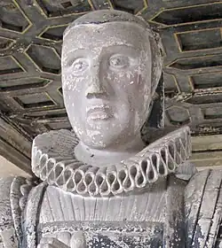 - Hester (d. 1612), married (1601) Robert Quarles of Romford, Essex,[71] eldest son of James Quarles of Ufford near Peterborough, Clerk of the Green Cloth. Robert, knighted in 1608, was brother of the poet Francis Quarles.[72] Robert made two further marriages.