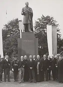 The Edward Mandell House Monument (Polish: Pomnik Edwarda Mandella House’a) is a bronze statue in Warsaw, Poland, in the district of Praga-South placed in the Skaryszew Park. It depicts Edward M. House, a 20th-century diplomat, and advisor to the President of the United States, Woodrow Wilson, who helped in outlining his Fourteen Points. The monument was originally made by François Black, and unveiled on 4 July 1932. It was destroyed around 1951, and its replica, made by Marian Konieczny, was unveiled on 11 November 1991.