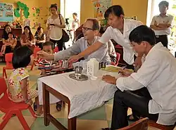Miguel's doctoral thesis was advised by Michael Kremer, an American development economist who later received the 2019 Nobel Memorial Prize in Economic Sciences for his contributions to developing the "experimental approach to alleviating global poverty." Beginning in the late 1990s, Miguel collaborated with Kremer on a randomized controlled trial aimed at evaluating the direct and spillover effects of a school-based deworming program on education and health in rural Kenya. The experiment was inspired by a trip Kremer took to rural Kenya with his wife, Rachel Glennerster, shortly after the completion of his PhD.[15] The randomized controlled trial involved a total of 32,000 children, and found that administering deworming treatments to children reduced rates of school absenteeism by 25%.[16] The study thus estimated that deworming could keep children in school for an additional year at a cost of $3.50 USD, substantially lower than other interventions such as subsidizing school uniforms or constructing additional schools.[17] The results of the study were published in Econometrica in 2004, and inspired the Deworm the World Initiative, an international campaign which has since 2014 delivered 1.8 billion deworming treatments to children around the world.[18] For their work, Miguel and Kremer received the Kenneth Arrow Award from the International Health Economics Association, granted to the best paper in health economics written within the previous year.[19]