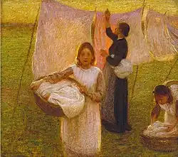 Edward Stott ARA (24 April 1855 – 19 March 1918) was an English painter of the late Victorian to early twentieth century period. He trained in Paris under Carolus Duran and was strongly influenced by the Rustic Naturalism of Bastien-Lepage and the work of the Impressionists, which he married with the English landscape tradition of John Linnell and Samuel Palmer. In the mid-1880s he settled in rural Sussex where he was the central figure in an artistic colony. His forte was painting scenes of domestic and working rural life and the surrounding landscapes often depicted in fading light. Stott's work achieved critical and commercial success at home and in Europe in his lifetime but his style of painting became unfashionable in the aftermath of the Great War and much of his work is now neglected and unconsidered.[1][note 1][note 2]