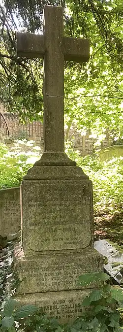 He died on 13 December 1932 and is buried in a family grave on the west side of Highgate Cemetery.