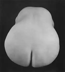 In February he started a new series of nudes, this time of dancer Bertha Wardell. One of this series, of her kneeling body cut off at the shoulders, is one of Weston's most well-known figure studies. At this same time he met Canadian painter Henrietta Shore, whom he asked to comment on the photos of Wardell. He was surprised by her honest critique: "I wish you would not do so many nudes – you are getting used to them, the subject no longer amazes you ‒ most of these are just nudes."[31]