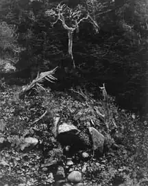 In May 1928, Weston and Brett made a brief but important trip to the Mojave Desert. It was there that he first explored and photographed landscapes as an art form.[35] He found the stark rock forms and empty spaces to be a visual revelation, and over a long weekend he took twenty-seven photographs.[36] In his journal he declared "these negatives are the most important I have ever done."[37]