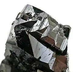 Magnetite mineral specimen from the ZCA Mine No. 4, Balmat-Edwards Zinc District. Crystal is about 4 cm. wide.