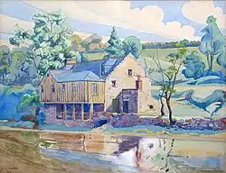 Throughout the 1930s he painted conventional, well executed landscapes.[3] These were mainly watercolours, with a strong emphasis on the countryside close to the family home in Juniper Green. They were often accepted for exhibition by the Society of Scottish Artists[4] (SSA) and the Royal Scottish Academy[5]