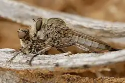 Efferia is an insect genus of mainly neotropical and nearctic Diptera in the family Asilidae or robber flies. It is one of the most species-rich genera of Asilidae, with particularly high diversity in arid or semi-arid ecosystems of the New World.