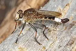 Efferia albibarbis is a species of robber fly in the family Asilidae.[1][2][3][4] It is a known predator of Cicindela hirticollis and Habroscelimorpha dorsalis dorsalis. [5]