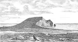 Eggøya ("Egg Island") is a peninsula of Jan Mayen island of the Arctic Ocean. It is located on the southern side, in the central part of the island, east of Sørlaguna, and defines the northeastern extension of the bay Rekvedbukta. To the west of the peninsula is the bay Eggøybukta, and to the east is the bay Jamesonbukta. The highest peak at the peninsula has a height of 217 m.a.s.l.[1] Eggøya consists of the northern part of an old volcanic crater, and small hydrothermal vents are still present.[2] The outer part of the peninsula forms the semicircular bay of Kraterbukta, facing south-southeast with steep slopes.[3][4] To the south of the peninsula is a small islet, Eggøykalven.[1]