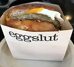 Eggslut (stylized as eggslut) is a sandwich restaurant chain with locations in Los Angeles, Las Vegas, Tokyo, Kuwait, and London, known for its signature dish "The Slut", a coddled egg on pureed potatoes, as well as their egg sandwiches.[1] It was founded by Alvin Cailan.[2]