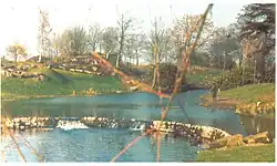 The Lugton Water was diverted and altered several times, for example in the 1790s its course was altered by the 12th Earl (1740–1819)[35] to run behind the Garden Cottage, rather than in front of it. The width was also changed at times, for instance five ponds or lakes were created by large weirs at one stage; the one at the Tournament Bridge is clearly visible in older prints of the 1840s (see illustrations) shown.[36]
