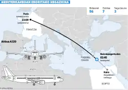 The Egyptian Civil Aviation Ministry confirmed that search and rescue teams were deployed to look for the missing aircraft. Search efforts were carried out in coordination with Greek authorities. A spokesman for the Egyptian Civil Aviation Agency stated that the aircraft most likely crashed into the sea.[29] Greece and France sent aircraft and naval ships to the area to participate in search and rescue efforts.[30][3][31] The United Kingdom sent a naval ship, while the United States sent a naval aircraft.[32][33]