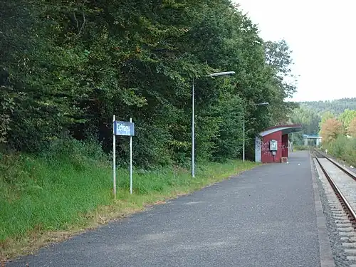 Eichhagen station (German: Haltepunkt Eichhagen) is a railway station in the municipality of Eichhagen, located in the Olpe district in North Rhine-Westphalia, Germany.