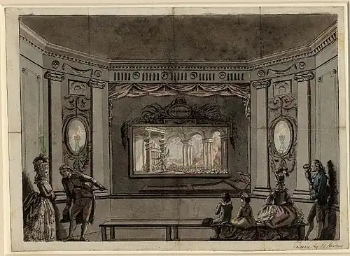 Described by the media of his day as "Moving Pictures, representing Phenomena of Nature", the Eidophusikon can be considered an early form of movie making. The effect was achieved by mirrors and pulleys.