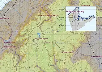 - ^ The Geological Survey Map of 1886 (Part P, Volume II of Hugh Fletcher and Eugene Rodolphe Faribault, Report on Geological Surveys and Explorations in the Counties of Guysborough, Antigonish, Pictou, Colchester, and Halifax, Nova Scotia, from 1882 to 1886, (Montreal: Dawson brothers, 1887)) and the 1953 Nova Scotia Department of Lands and Forests Land Grant Map (Index Sheet no. 98) both us the term to refer to the plateau. The topographical map published by Natural Resources Canada in 1999 (Merigomish sheet 11/E9), uses it for the peak only.