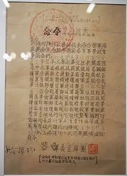 The Eighth Route Army was also responsible for the reeducation of Japanese POWs, and defectors during the Second Sino-Japanese War. In November 1940, the General Political Department of the Eighth Route Army established the Yan'an Japanese Worker and Peasant School. On May 15, 1941, the school was officially opened at Baota Mountain, Yan'an.[4]