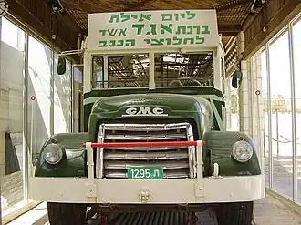 The museum has exhibits about the capture of the city of Eilat in 1949, the history of the Israel Red Sea Outpost. The museum has a collection of photos about the development of the city of Eilat dating from the 1940s to the 1960s.[3] The museum contains information and multimedia about the companies that settled in this part of Israel such as the Salt Company,[4] Mekorot Underwater Observatory Company[2] and the Eilat Electric Company.[5] The museum contains exhibits about the establishment of the city of Eilat as well as information about Israel's southern border, and there are also exhibits in the museum about the Eilat pipeline.[6] The museum also contains information about Timna Copper Mines and the port of Eilat, as well as exhibits about the city's environment. The museum contains exhibits about Operation Uvda.[7] The museum also has a missile storage container obtained from the Karina-A boat.[8] The museum has exhibits about the fauna of Israel's Red Sea coastal territories.[1] The museum has a reconstructed model of a bus from the Ma'ale Akrabim massacre.[9]