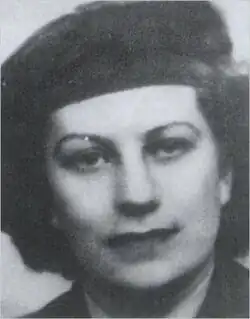 On 13 April 1945 she escaped with two French girls from a work gang by hiding in the forest, later travelling through Markkleeberg, where they were arrested by the S.S. but released after fooling their captors and reportedly hidden by a priest in Leipzig until the arrival of United States troops.[9]