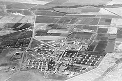 An Ulpan, a school for learning Hebrew was set up in the camp. In December 1921, a second farm called Tel Yosef (after Joseph Trumpeldor) was established by members of the Gdud on the hill of Qumya. Disagreements on funds and internal politics have led Ein Harod and Tel Yosef to part ways in 1923, with many members leaving the former for the latter. The group that remained in Ein Harod included 110 members and was headed by Lavi, Yitzhak Tabenkin, Aharon Zisling and David Maletz. The group at Ein Harod continued to get little support from the Zionist organizations and after the 1929 Palestine riots, the members chose to move their camp from the area of the spring to the hill of Qumya, next to Tel Yosef and thus the settlement at the spring was abandoned.[12][15][16] Two-thirds of the group are believed to have resettled at Tel Yosef.[9][17] While it's sometimes considered that Ein Ḥarod was founded in 1921 and Tel Yosef in 1923, together they formed one farming unit.[9] The spring continued to be used as a camp site for the pioneers of Beit HaShita and Dovrat before their departure to their permanent locations.[18][19]