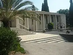 Mishkan Museum of Art is one of the first art museums in Israel. The museum was founded in 1937 as an "art corner" during the early years of the kibbutz in the belief that culture and art were among the essential components of a society. The artworks were initially displayed in the art studio owned by Haim Atar, a small wooden hut. A new, imposing, museum building, designed by an architect Samuel Bickels, was inaugurated in 1948.[25] During construction of the museum, the 1952 Mapai/Mapam split happened, but the museum was preserved as the joint institution for the split kibbuzim. The museum was declared as a "heritage site" by the Council for Conservation of Heritage Sites in Israel.