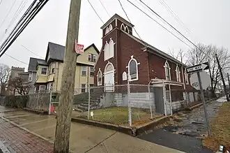 The building was constructed in 1918 for a Christian congregation of Swedish Lutherans. By 1918 it had been taken over by the Ein Jacob congregation, which occupied the premises until disbanding in 1962. The building was then sold to the present congregation, the Church of God and Saints-Christ. The building is architecturally distinguished for its unusual use of low-cost materials to produce a comparatively sophisticated Gothic appearance.[2]
