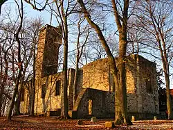 The Einkorn is a 510 metre high hill spur in the northern Limpurg Hills near Hessental in the borough of Schwäbisch Hall. It has the ruins of a baroque pilgrimage church that was dedicated to the Fourteen Holy Helpers. The hill is located in the German state of Baden-Württemberg.