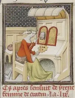 During the Renaissance, Giovanni Boccaccio, a 14th-century humanist, included Eirene in De mulieribus claris (Latin for On Famous Women). Some of the paintings he credits to Eirene are an older Calypso, the gladiator Theodorus and Alcisthenes, a famous dancer.[2]