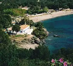 The restaurant's location was selected in 1961 by Hans Schilling, a German, and his Czech wife Marketa, who wanted a piece of land for a planned holiday resort.[10] By the year 1963, the resulting holiday resort included a small makeshift bar known in Spanish as a "chiringuito", which was variously called "El Bulli-bar" and "Hacienda El Bulli"; this little bar was the nucleus of the future restaurant El Bulli. The name "El Bulli" came from a colloquial term used to describe the French bulldogs the Schillings owned.[11] The first restaurant was opened in 1964.