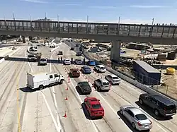El Chaparral (Spanish: Puerta México el Chaparral) is a southbound vehicle crossing from San Diego into Tijuana. It is part of the San Ysidro Port of Entry. It replaced the former entry point known as Puerta México which stood immediately east of El Chaparral. The opening of El Chaparral roughly tripled the number of traffic lanes to 22, reducing wait times for vehicles entering Mexico. It is roughly in the same location as the former Virginia Avenue crossing, where trucks entering the US from Mexico prior to 1983 was located. Access is via a four-lane, temporary access road that is 0.2 miles (0.32 km) long and leads west from the end of Interstate 5.[1][2][3]