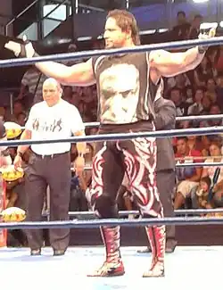 Cosme subsequently debuted in the International Wrestling Association (IWA) in 1999. He was given the gimmick of "El Patriota" Ricky Banderas, a name that, according to Cosme, was created by fusing the artistic names of Latin musician Ricky Martín and actor Antonio Banderas.[6] He debuted in Extreme Championship Wrestling (ECW) on that year, where he worked in a televised match. Following a period of teaming with Los Boricuas, his character was teamed with Germán Figueroa who wrestled as Gran Apolo and formed a tag team dubbed La Nueva Generacion, which won the IWA Tag Team Championship three times. On August 21, 2000, in a show in Levittown, Puerto Rico, Cosme's character turned on Gran Apolo. Following this, he joined the company's dominant heel stable, Los Intocables, along with Miguel Pérez and Jesús Castillo.[5] After the stable's dissolution, he was involved in another stable named Starr Corporation, where after Cosme's insistence his character became darker and was renamed "El Mesías" Ricky Banderas.[5] Following this, he was teamed up with Shane Sewell in a stable known as Los Hermanos en Dolor.[5] In 2001, Cosme performed in a tryout match for the WWF and Frontier Martial-Arts Wrestling's 12th Anniversary Show pay-per-view event. He won the IWA heavyweight title for a third time on June 15, 2002, and remained champion until Ray González debuted with the company as "Rey Fénix", in a match that he describes as the best match he had wrestled at the moment.[7][8]
