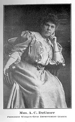 - ^ "Mrs. DeGroff Dies; Funeral on Friday". El Paso Herald. August 11, 1926. p. 1. Retrieved March 13, 2022 – via Newspapers.com. and "Mrs. DeGroff Dies Wednesday A. M. Funeral on Friday". p. 6.