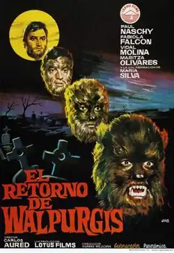 El Retorno de Walpurgis (The Return of Walpurgis, also known as Curse of the Devil) is a 1973 Mexican-Spanish co-production horror film that is the seventh in a twelve-film series about the werewolf Count Waldemar Daninsky, played by Paul Naschy. This film ignored the events in all of the earlier Wolf Man films and began an entirely new origin for el Hombre Lobo, which is strange because the film's Spanish title The Return of Walpurgis seems to tie it in with Naschy's earlier 1970 film Walpurgis Night. The Wolf Man makeup was done by Fernando Florido. The film was shot in June 1973, and by September, it was already in theaters in Spain, as El Retorno de Walpurgis. It wasn't released theatrically in the U.S. however until 1976, as Curse of the Devil.