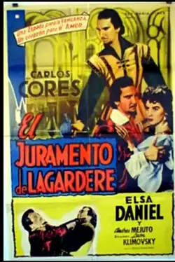 El Juramento de Lagardere is a 1955 Argentine film directed by León Klimovsky, based on a screenplay by Emilio Villalba Welsh after the French novel Le Bossu -El jorobado by Paul Féval. The film stars Carlos Cores, Elsa Daniel, Andres Mejuto and Golde Flami, and premiered on December 11, 1955.[1]