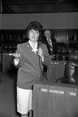 She was born in The Bronx, New York and moved to Florida in 1964. During the constitutional revision session for the state in 1968, she was legislative assistant to George Firestone. She was elected to the Florida House of Representatives for North Miami-Dade County in 1972. She sponsored the bills which created the Florida Commission on the Status of Women, the 1989 hate crime law and the Patients Bill of Rights. She helped introduce legislation that protected women and children by enforcing child support and protecting against domestic violence. Gordon served as Speaker Pro-Tempore (acting speaker) for the state assembly. In 1992, she was named Dean of the Florida House. She retired from the Florida legislature in 1994.[4][1]