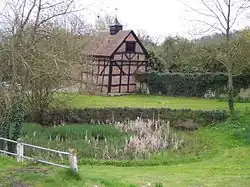 The Iron Age fort of Gadbury Camp is located in the parish, east of the village, on a hill overlooking the river valleys of the Leadon and Severn. It was surrounded by a single massive rampart, making it a rare "univallate" construction. The camp area is 10 acres, is 100m wide at its widest point and has 400m of ramparts. It was occupied from the fourth century BC to early centuries AD and likely served as a site for redistributing subsistence and craft goods. Finds at the site include an Iron Age statue and Roman coins.[2]