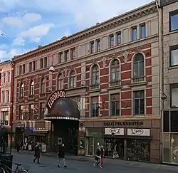 In 1891 the half-acre plot at Torggata 9 was bought by a company, which constructed two buildings which were designed in the New Renaissance style by architect Harald Olsen. Along Torggata was a four-story building which contained business locations; inside was a courtyard with an area for shows and concerts with seats for 1600 people. In the summer of 1903, the inner building was leased to Fahlstrøms Theater. Architect Bull designed a fan-shaped baldachin in glass over the door along Torggata, together with a glass roof over the theater building. The theater was used for 8 seasons before it went into bankruptcy, and presented its last performance in August 1911. Two days later, a cinema opened in the same building. After a few years this was taken over by a Swedish company and renamed to Admiral Palads.