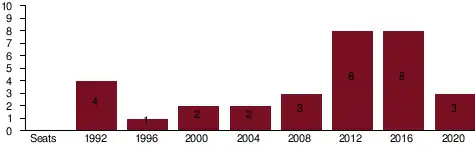 Formed in 1994 from the political wing of the Association of Poles in Lithuania, LLRA experienced a surge in support in the 2000s, under the leadership of Waldemar Tomaszewski. It increased its representation from under 2% in 2000, leading to the party being invited to join the governing coalition:[7] an invitation they rejected. They increased their vote again to 3.8% in 2004 and 4.8% in 2008: just short of the 5% election threshold for any of the Seimas's 70 proportional representation seats. In the 2009 European election, they won 8.2% and one seat. The party's vote is concentrated in the south-east of the country, around the capital, where the Polish minority is located. At the 2012 election, LLRA broke through 5% in a parliamentary election for the first time: qualifying for proportional representation seats.