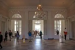 The building initially served as the seat of the Allied Security Office (Military Security Board).[9] In 1960 the building was sold to the Federal Republic of Germany by the State of Rhineland-Palatinate, which had inherited it in 1946 as the legal successor to Prussia. In 1998 it was again restored, and the exterior, which had been painted in the traditional ochre and purplish red of Prussian forts and palaces, was repainted in its 18th-century colour scheme: pale grey walls and grey architectural details.[1] The palace currently houses offices for various branches of the federal government (including the Institute for Federal Real Estate (Bundesanstalt für Immobilienaufgaben), which also oversees the building, the Central Tariffs Office (Hauptzollamt), the Bundeswehr Office for Armaments, Information Technology and Implementation (Bundesamt für Ausrüstung, Informationstechnik und Nutzung der Bundeswehr) and the Federal Testing Agency (Prüfungsamt des Bundes), a division of the Bundesrechnungshof, the national auditing agency. It is therefore not accessible to the public except during special events.