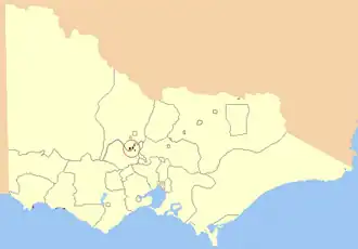 Castlemaine Boroughs was an electoral district of the Legislative Assembly in the Australian state of Victoria from 1856 to 1859. It included the towns Castlemaine, Muckleford, Harcourt and Elphinstone,[1][2] all roughly 110 to 130 km north-west of Melbourne. The boundaries included non-continuous urban areas.