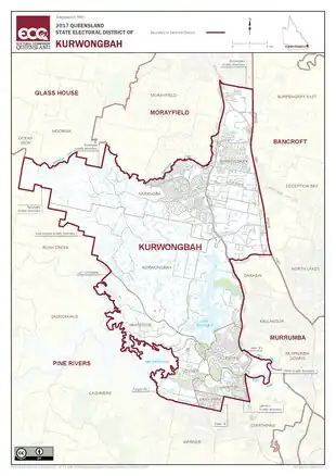 Kurwongbah is an electoral district of the Legislative Assembly in the Australian state of Queensland which existed at first from 1992 to 2009, and was re-introduced for the 2017 state election. It is named after Lake Kurwongbah.The district is based in the City of Moreton Bay.[1]