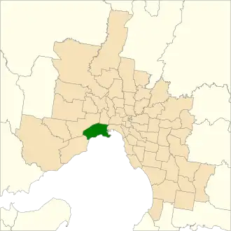 ![]() Location of Williamstown (dark green) in Greater Melbourne | |